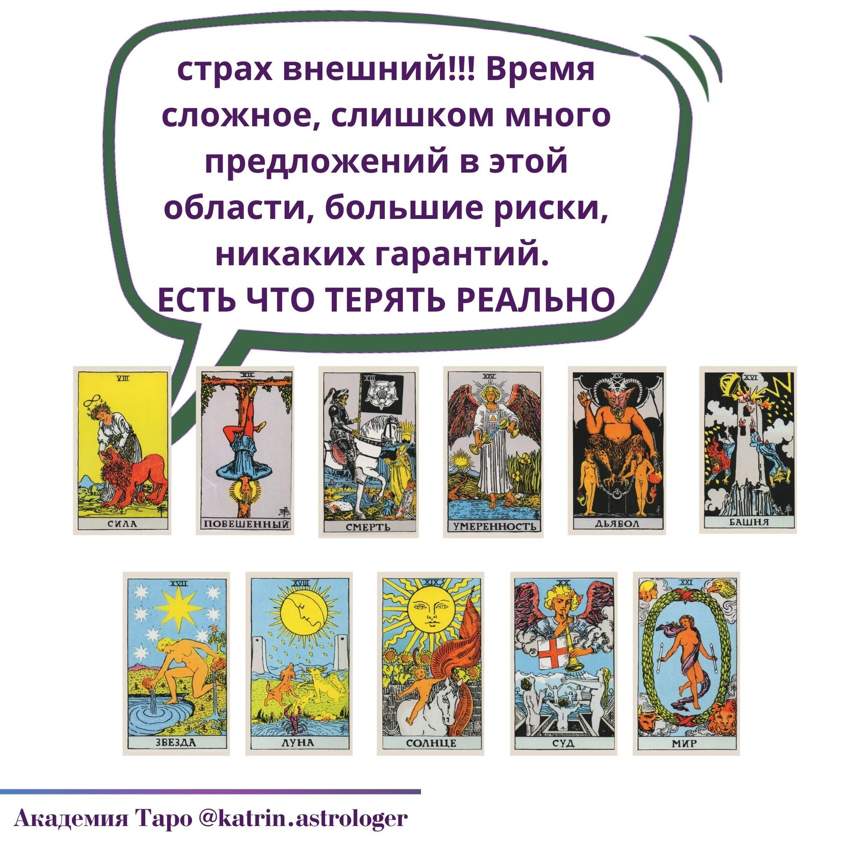 Сила, Повешенный, Суд, Мир — они показывают, где человек тормозит себя именно зрелыми страхами взрослой жизни.