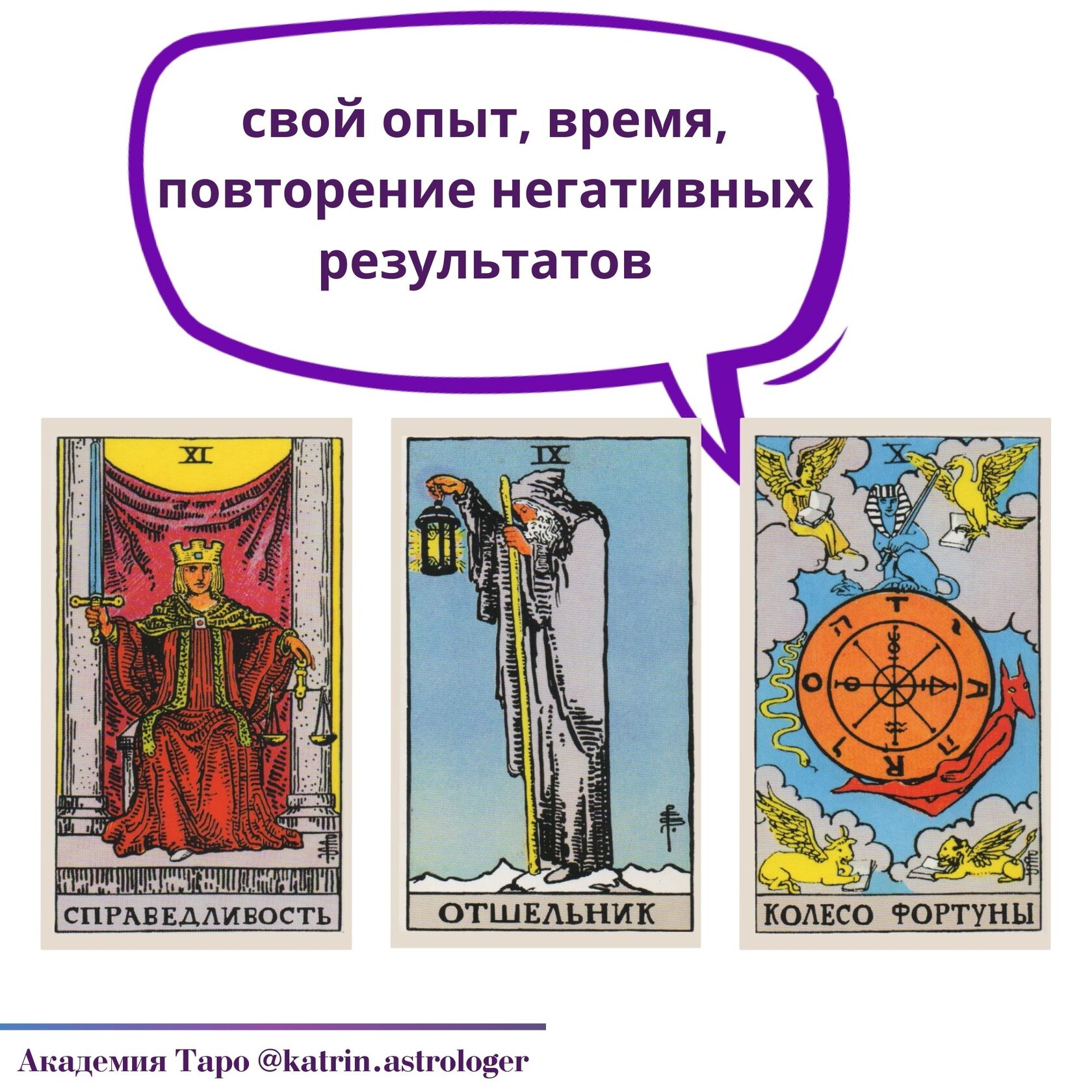 Справедливость, Отшельник, Колесо — говорят о том, что: